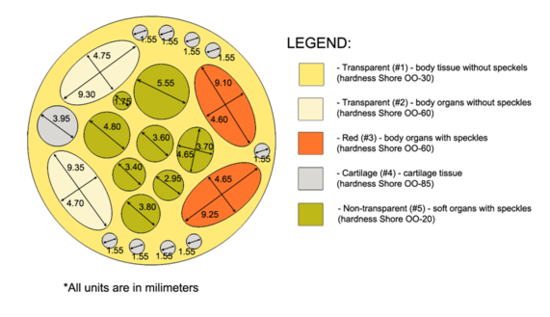 ![]() Rat Phantom Cylindrical For R&D can be fabricated either as a simple cylinder or as an anatomically correct mouse (rat). Both phantoms are powerful tools that can be used for testing and calibration of various medical imaging devices. The cylindrical version has 27mm diameter and 70mm height which correspond to the dimensions of small animals (i.e. a laboratory mouse.) The small phantom is ultrasound, MRI and CT compatible and it can be customized in size and shape. The internal features can be also modified in terms of shape and properties to fit the needs of any particular bio-medical research project. ![]() Rat Phantom